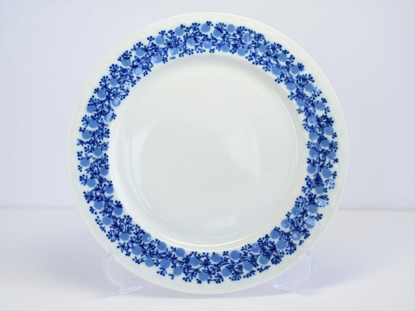 2色のブルーで描かれた木の実ような模様が、上品でエレガントな雰囲気に仕上がっています。