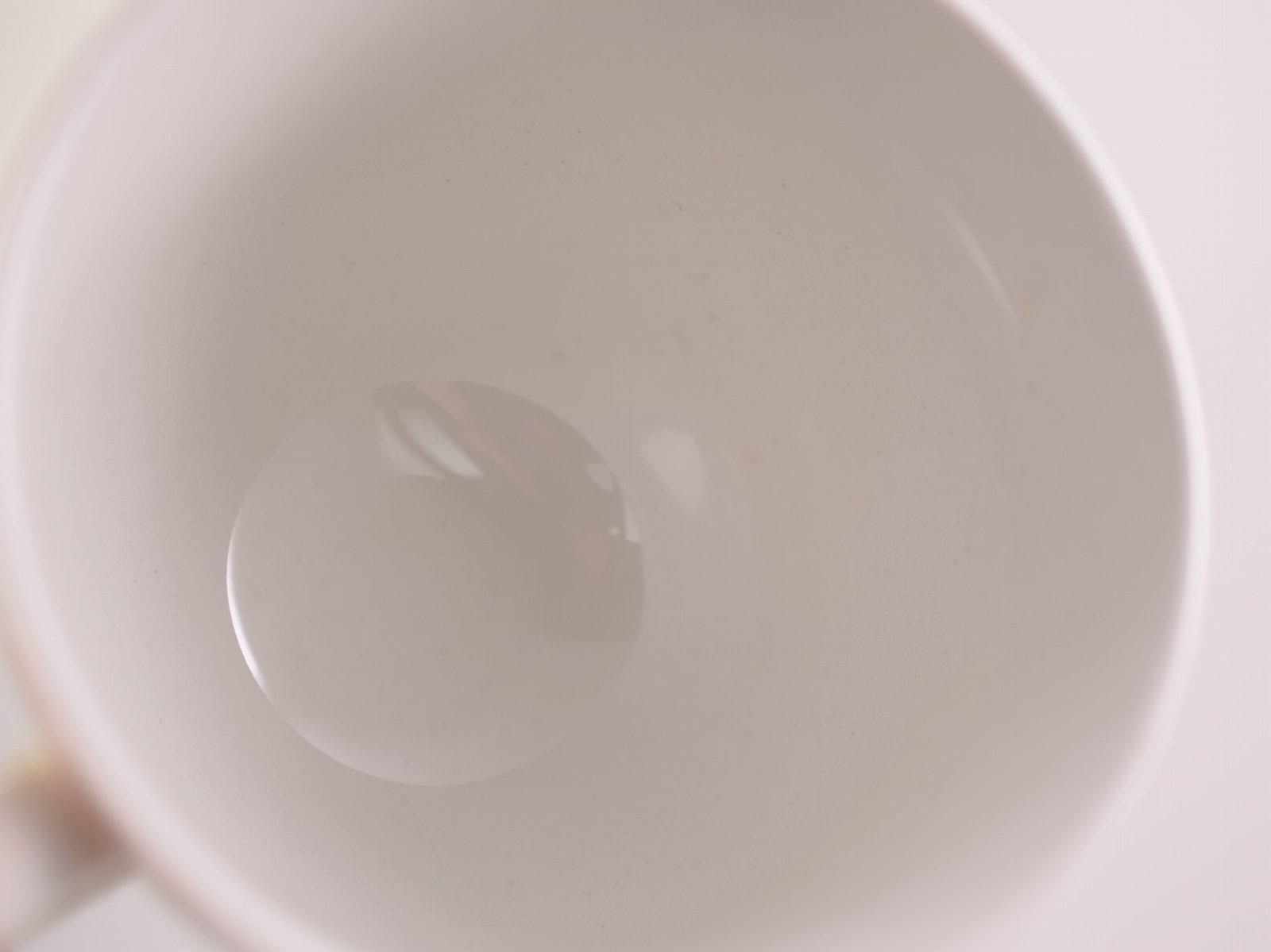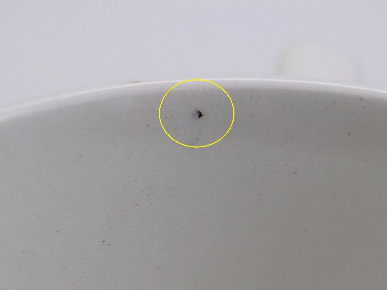 カップ内部に製造時からの5mm程の線状の凸と、小さな黒いペイント飛びのようなものが見受けられます。