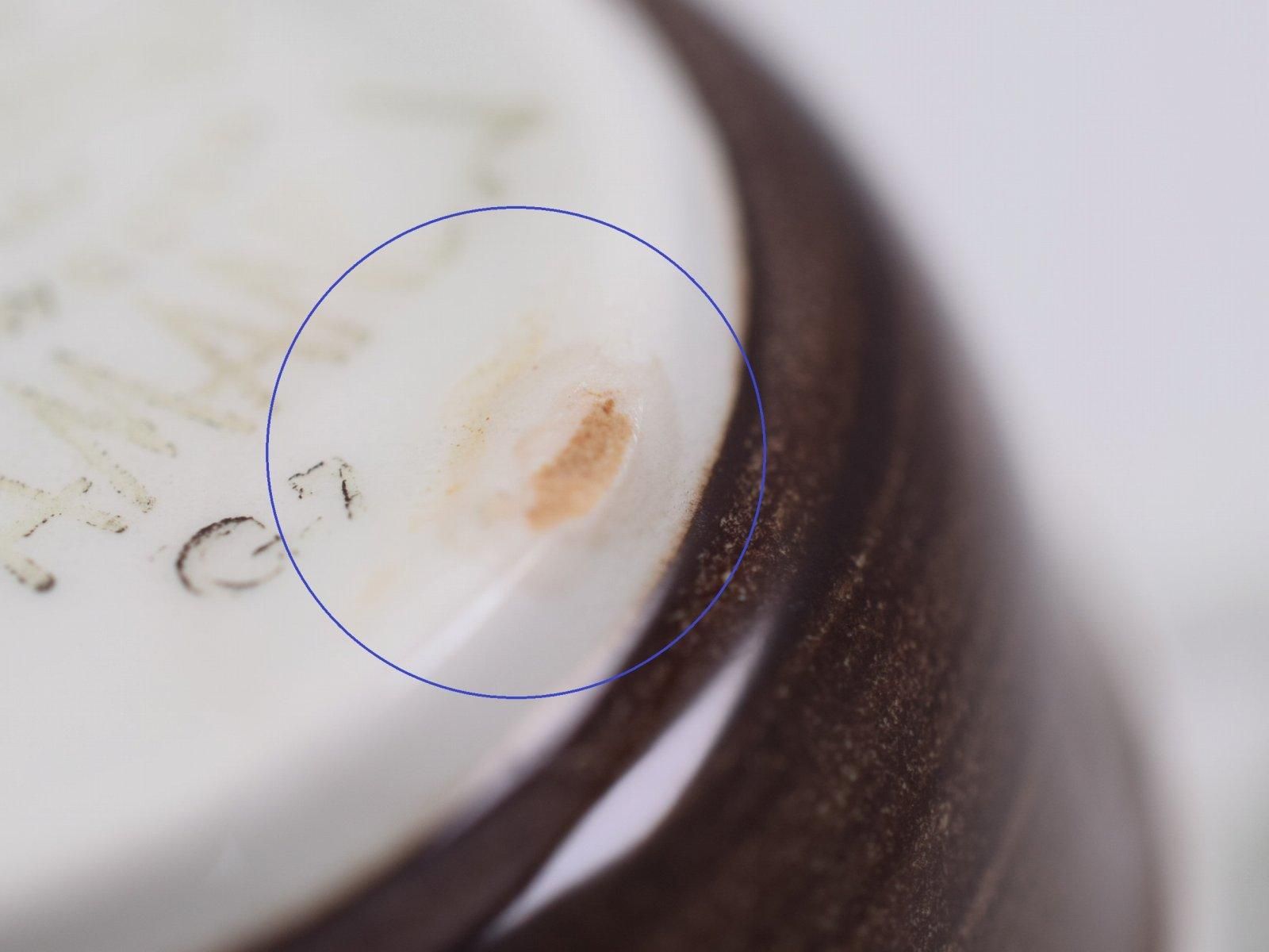 カップ裏側の支柱痕からの水シミで内側に薄っすらとしたシミが見受けられます。