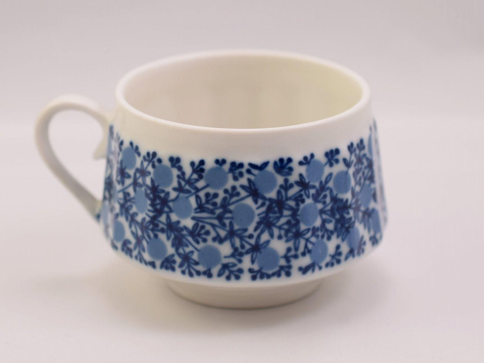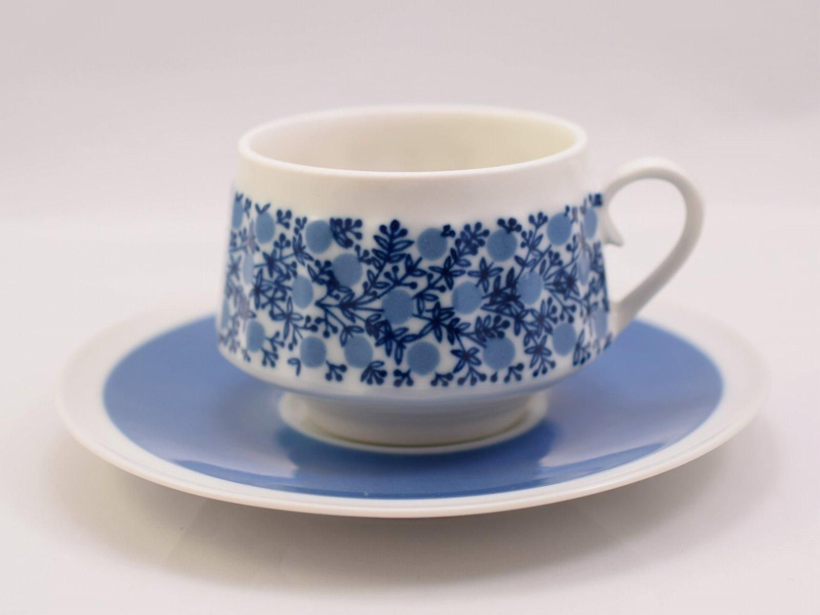 2色のブルーで描かれた木の実ような模様が、上品でエレガントな雰囲気に仕上がっています。