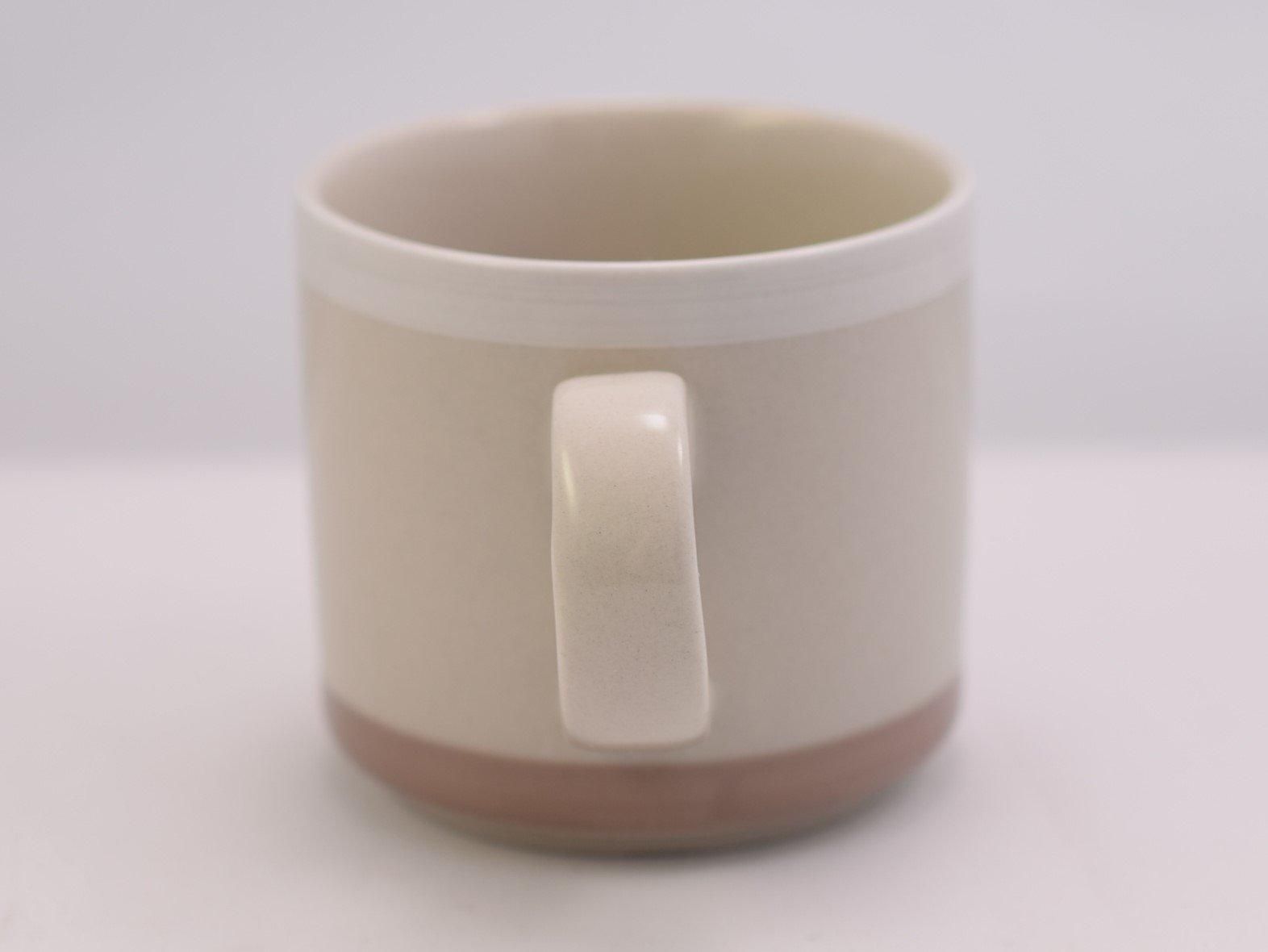 グレーがかったベージュにコーラルピンクとホワイトのラインが入ったとてもシンプルなデザイン。
