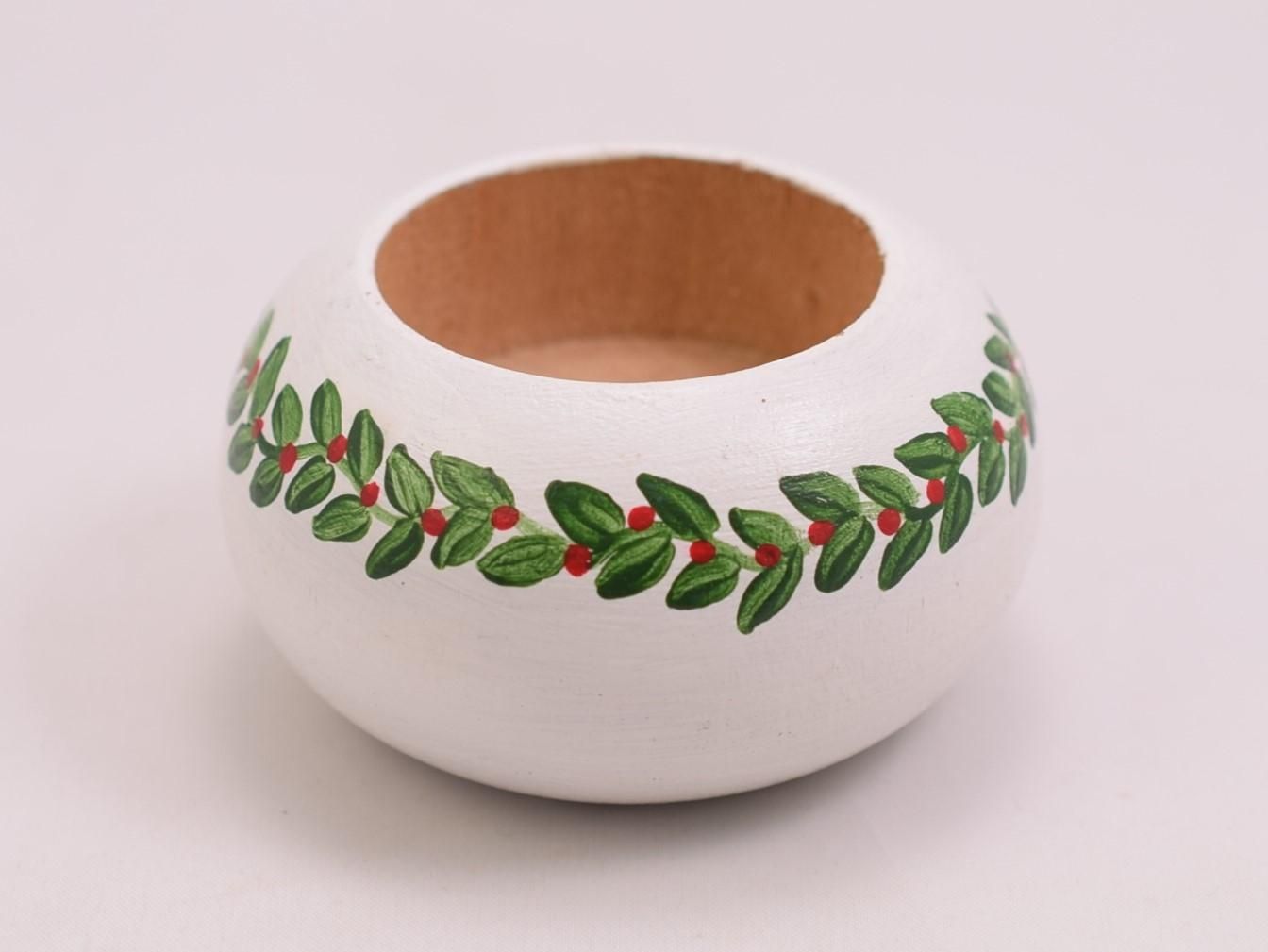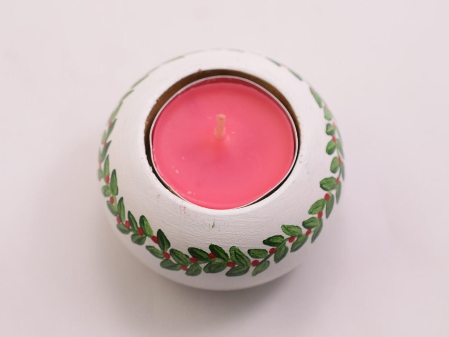 スウェーデン Xmas リース柄 木製 キャンドルホルダー M (1)