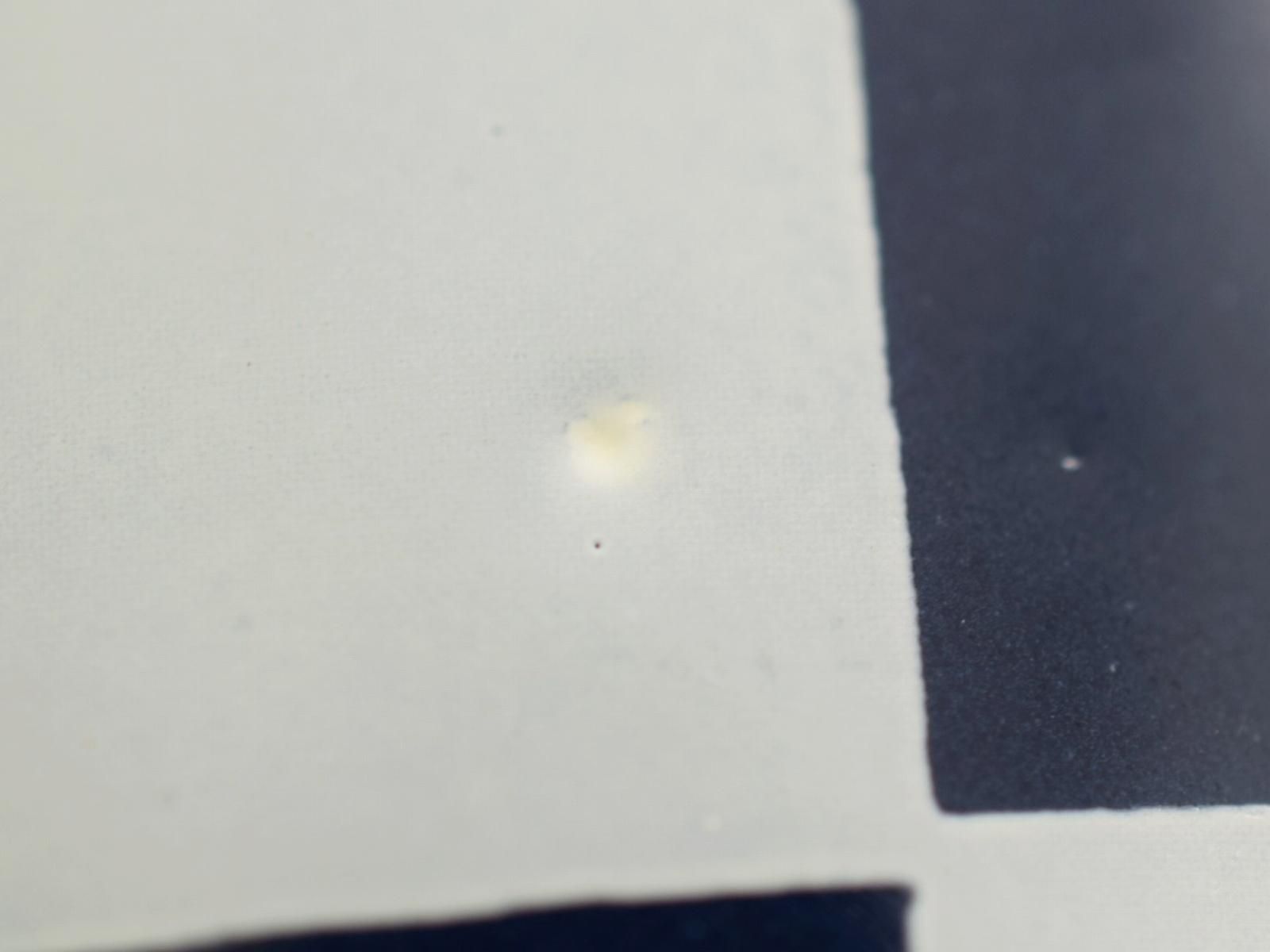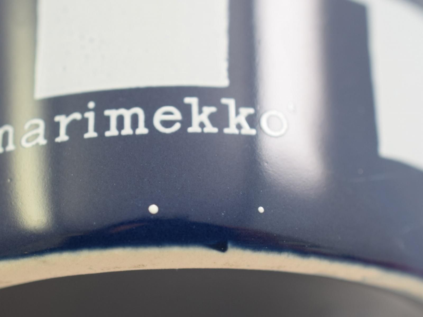 marimekkoロゴ下に小さな点状のペイント飛びが見受けられます。