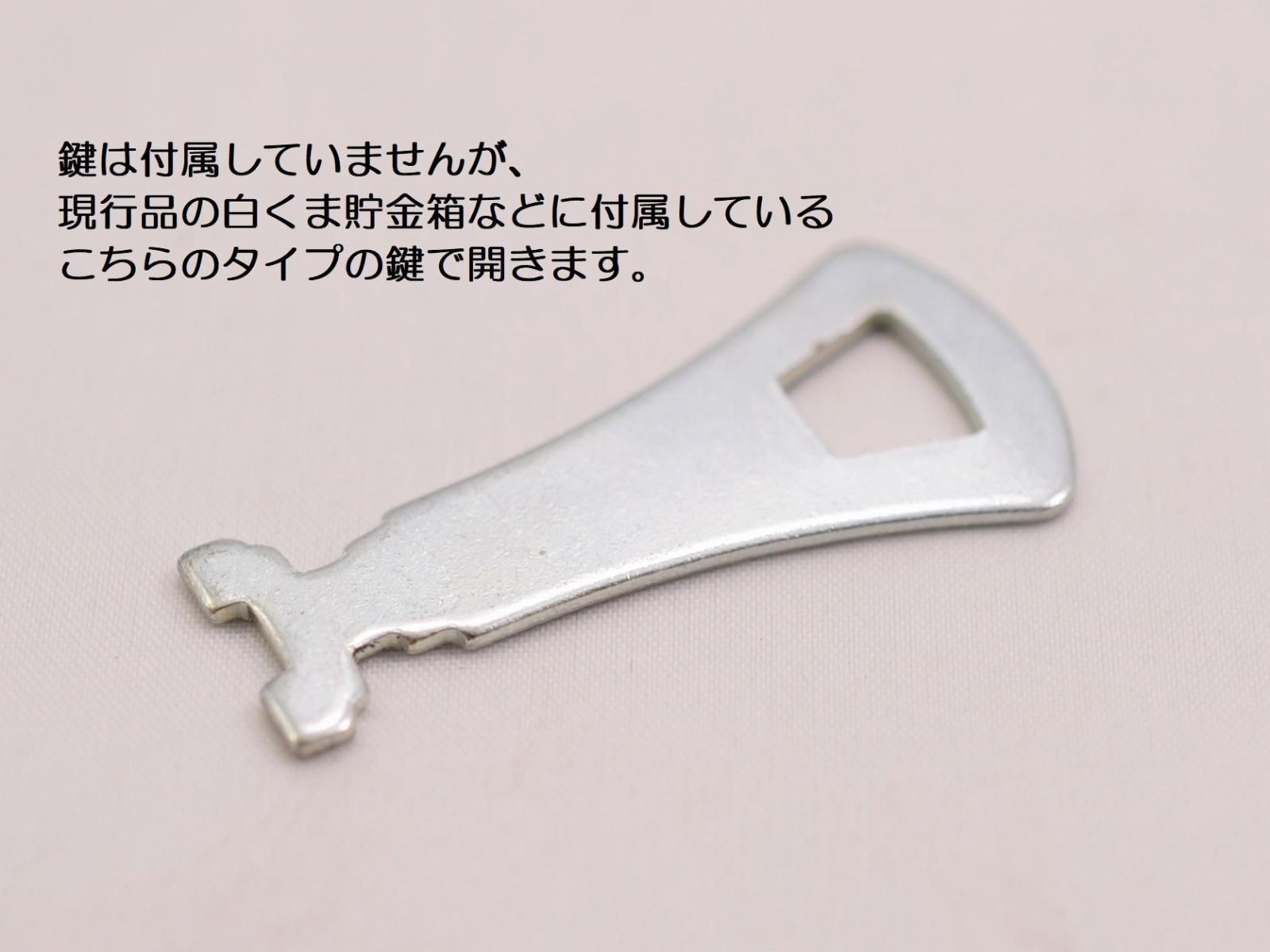 ですが、現行品の白くま貯金箱などに付属している鍵(画像12・13枚目)で開きます。