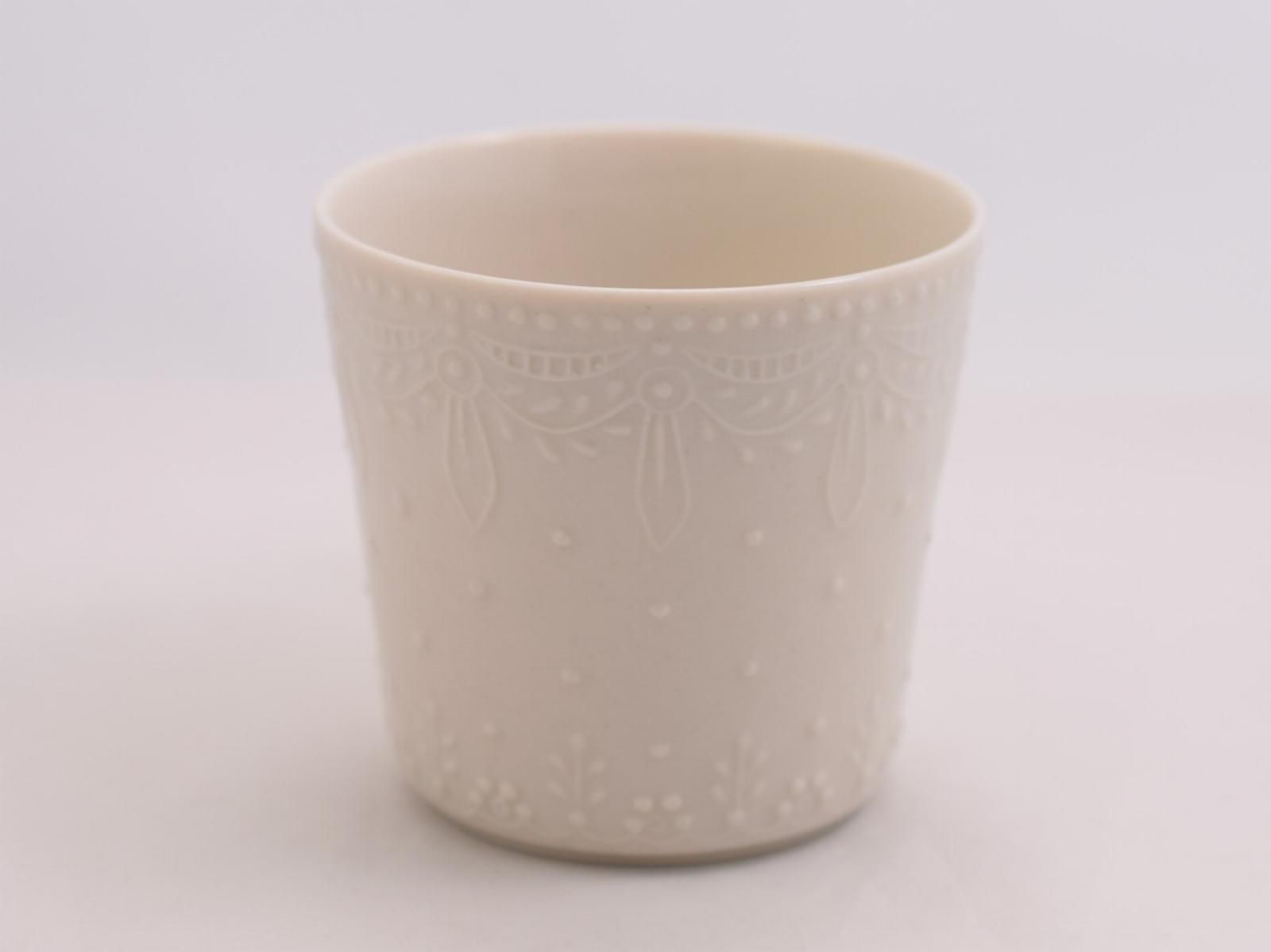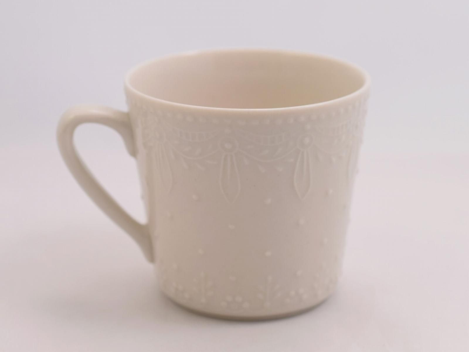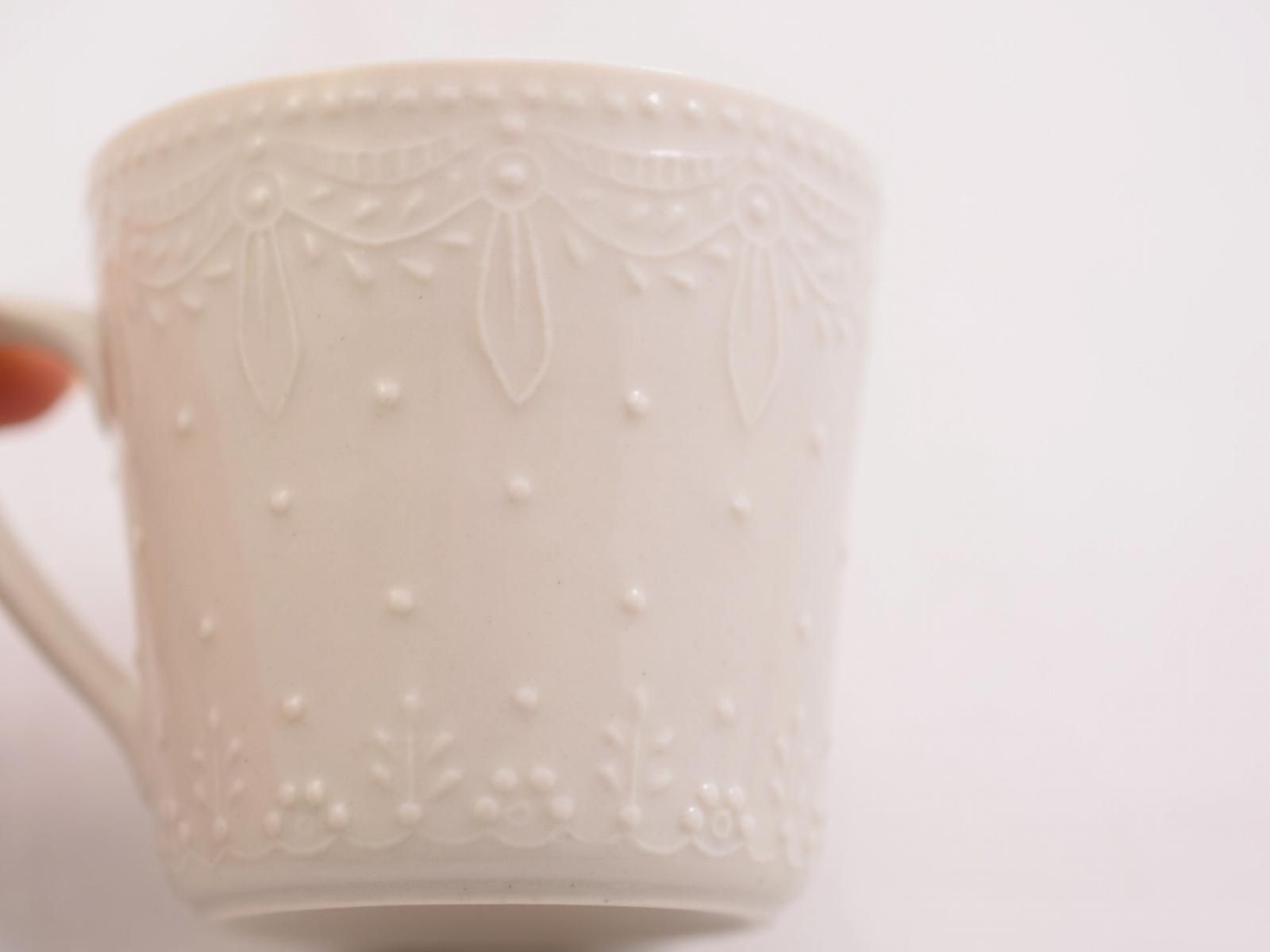 ホワイトの素地にエンボス加工のみでレースの様な模様がデザインされています。