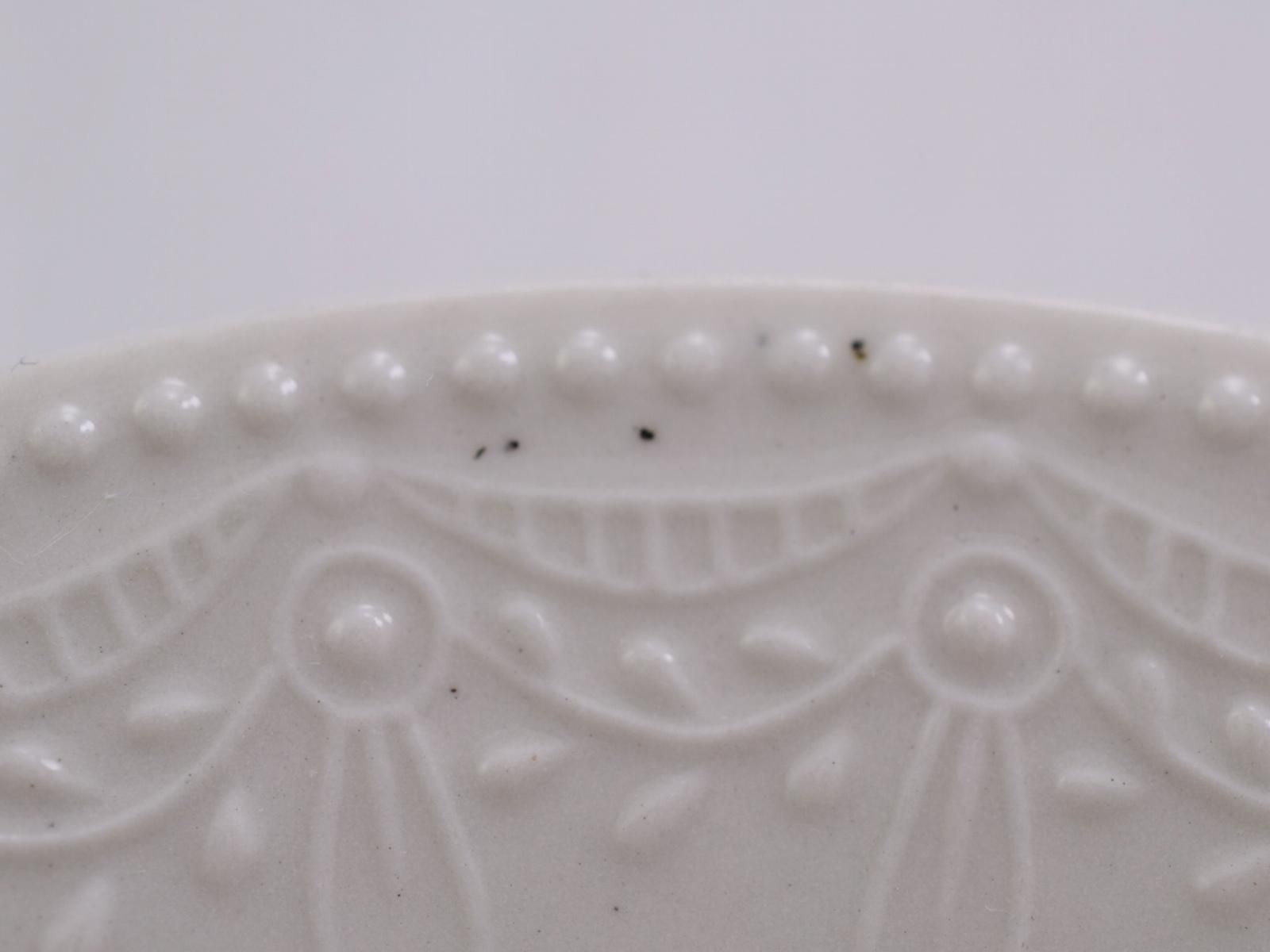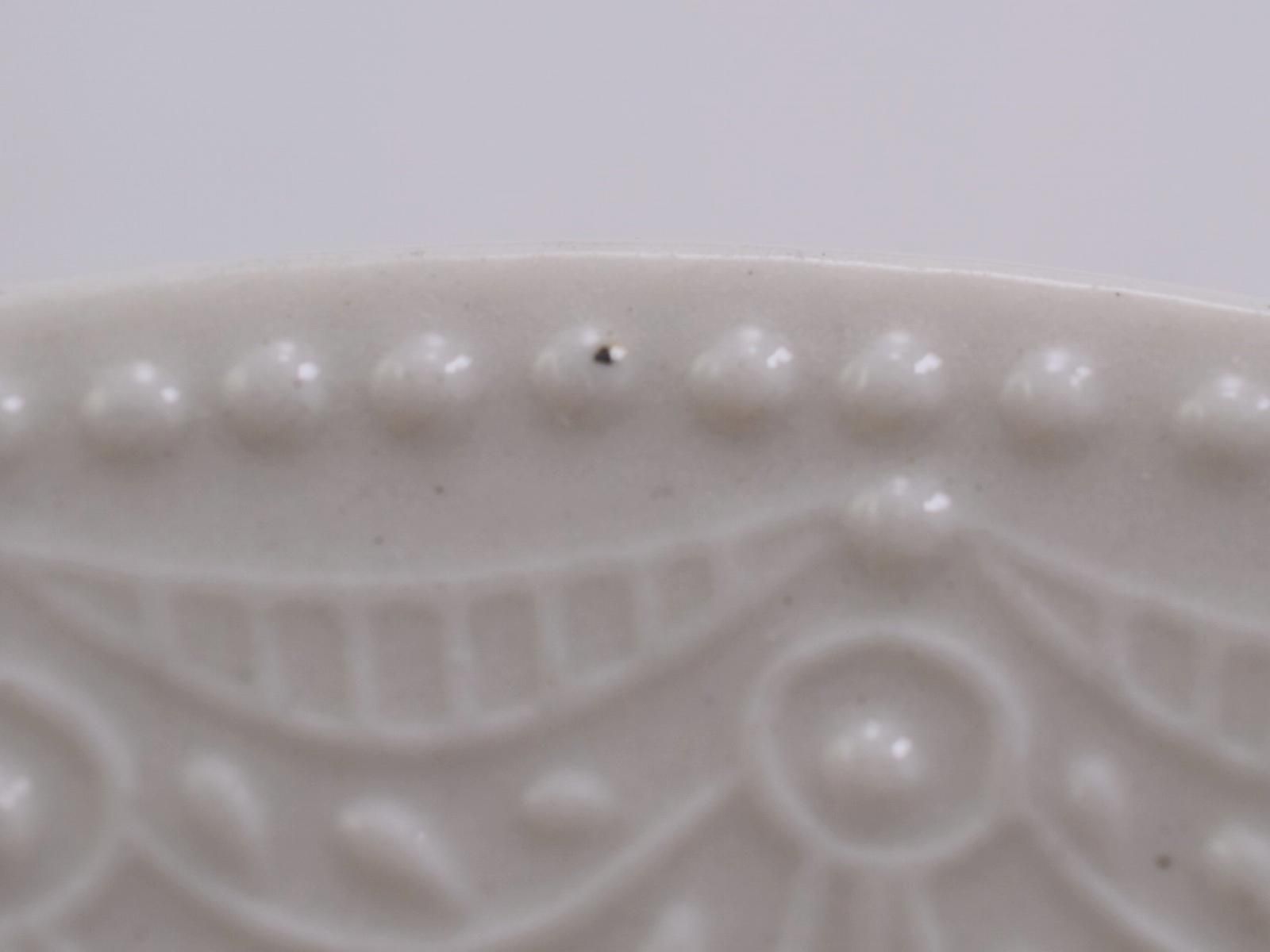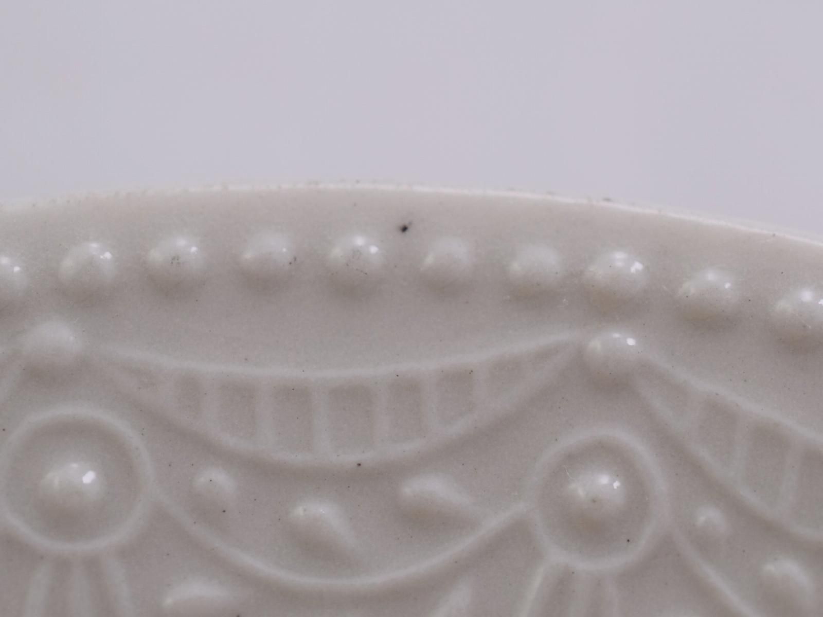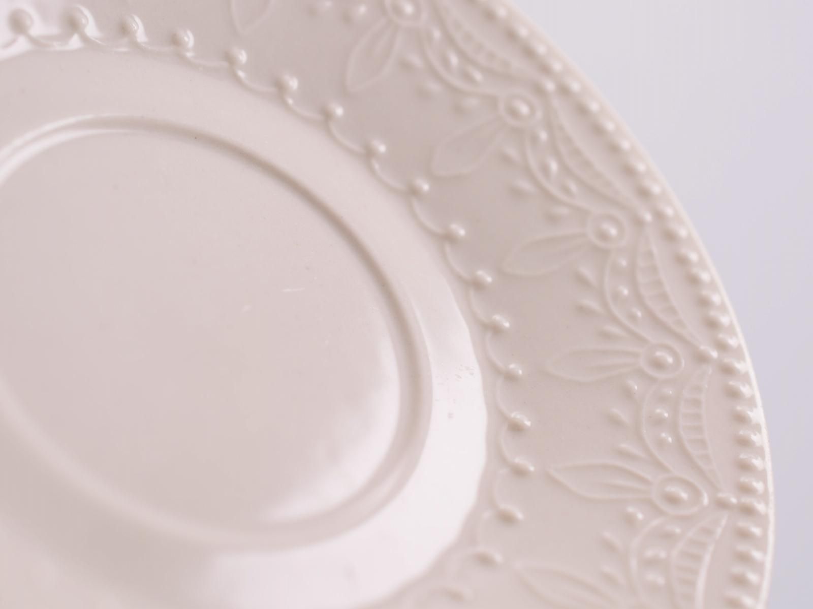 ホワイトの素地にエンボス加工のみでレースの様な模様がデザインされています。