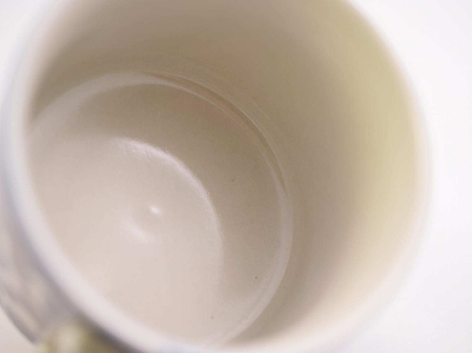 カップ持ち手を右にして9時の方向の表面に、製造時からの小さな凹が1カ所見受けられます。