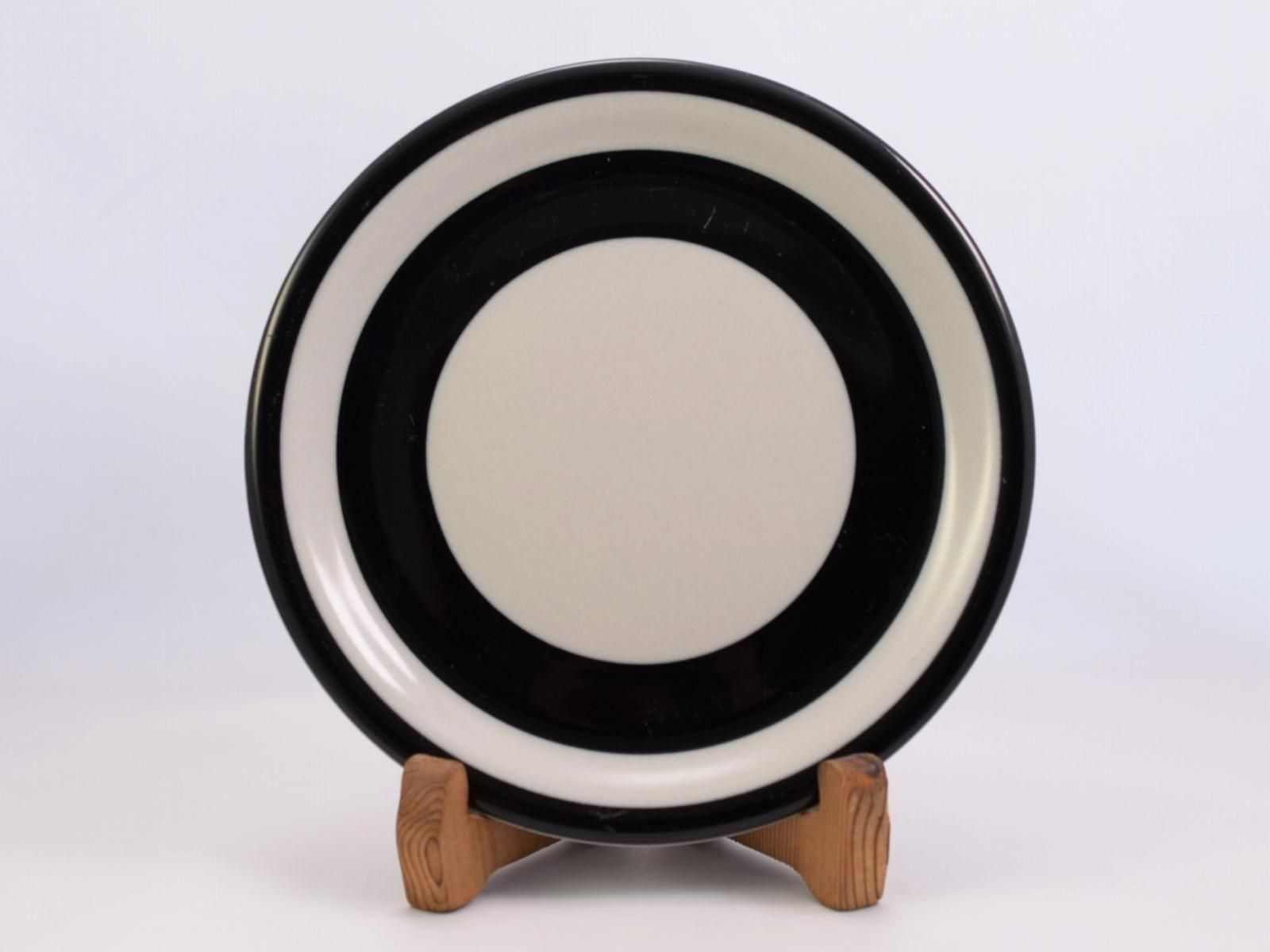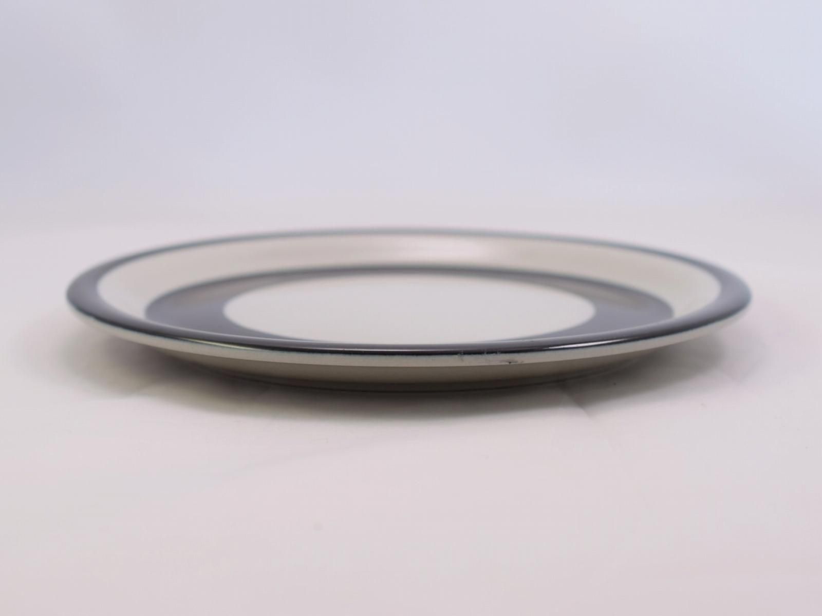 カップ&ソーサーにはステンシル技法で吹き付けプリントされた柄がデザインされていますが、こちらのプレートは、ソーサーと同じシンプルなラインのみです。